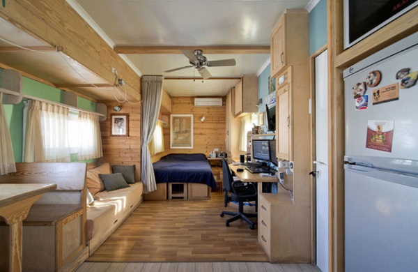 Έχοντας άφθονη εμπειρία σε ξυλουργικές εργασίες και εσωτερικό σχεδιασμό, αποφάσισε να δημιουργήσει το δικό του σπίτι πάνω σε ρόδες.