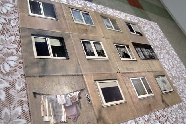 Οι άνθρωποι της Gyva Grafika ανανέωσαν τους τοίχους μιας παλιάς τουαλέτας σε εστιατόριο της Λιθουανίας, με πρωτότυπο τρόπο. Φωτογράφισαν μια γειτονιά του Κάουνας στην οποία μεγάλωσαν και στη συνέχεια εκτύπωσαν μερικά αυτοκόλλητα, τα οποία κόλλησαν στα πλακάκια που υπήρχαν στον τοίχο του μπάνιου.