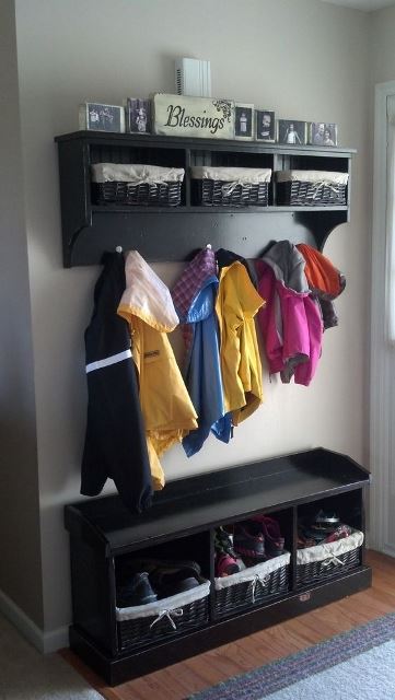 Το προτιμότερο είναι να έχετε ένα έπιπλο μεσαίου μεγέθους για να ακουμπάτε πάνω τα κλειδιά, τους λογαριασμούς και άλλα, κρεμάστρες γιατί με μία κίνηση μπορείτε να αφήσετε το πανωφόρι σας ή να πάρετε το σάλι σας και ένα μεγάλο καλάθι για τις ομπρέλες που ίσως χρειαστούν.